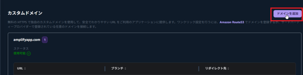 AmplifyコンソールでカスタムドメインをAmplifyコンソールで設定する