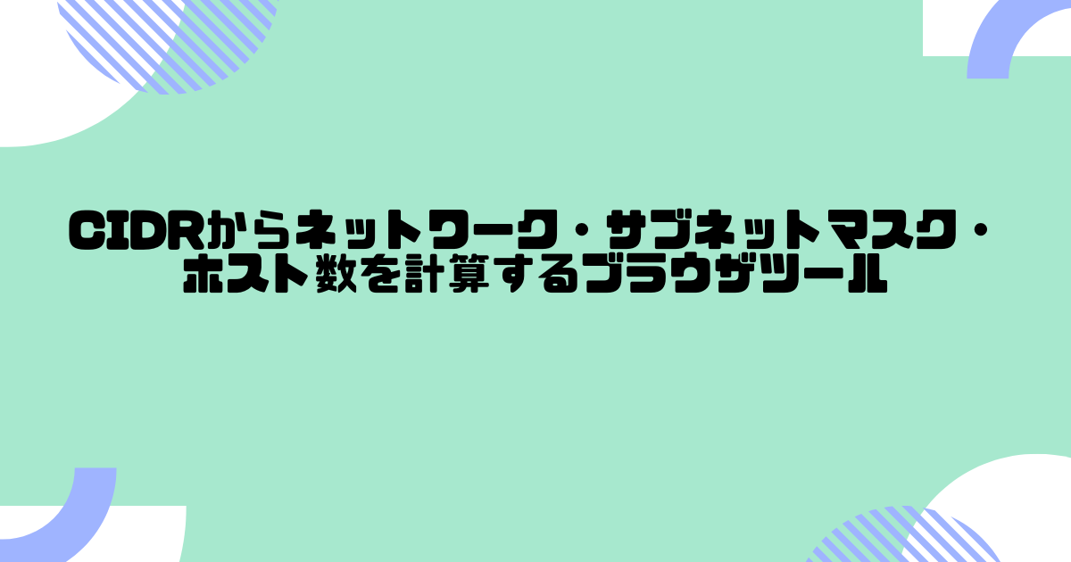 この記事では、CIDR表記からネットワークアドレス・サブネットマスク・使用可能ホスト数などを一括計算するブラウザツールを紹介します。